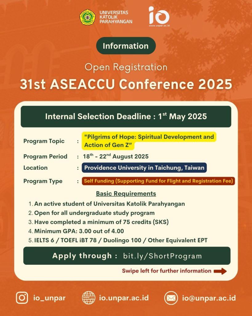 And you can also contact us via Email by messaging io@unpar.ac.id or through our hotline WhatsApp at 0822-6006-4700