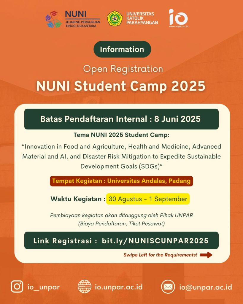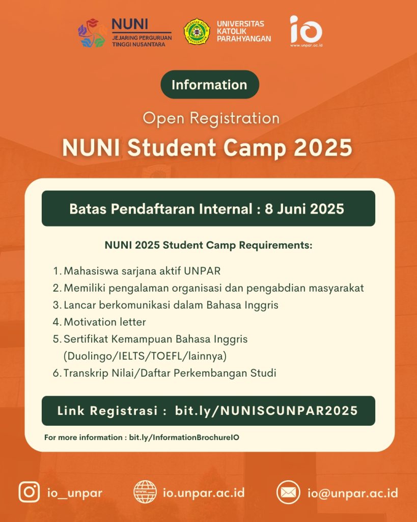 Daftarkan diri melalui bit.ly/NUNISCUNPAR2025 paling lambat hingga tanggal 8 Juni 2025.